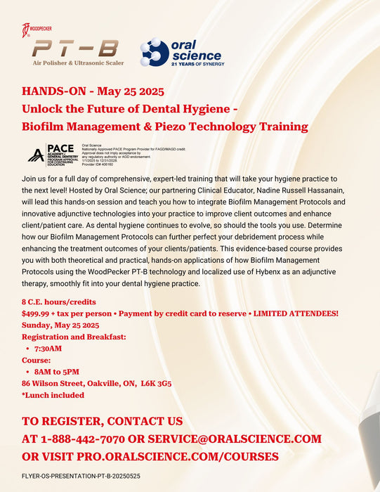 HANDS-ON - Woodpekcer PT-B - Oakville, ON - May 25 2025 - Unlock the Future of Dental Hygiene - Biofilm Management & Piezo Technology Training