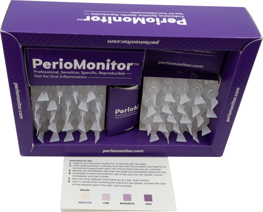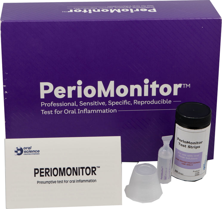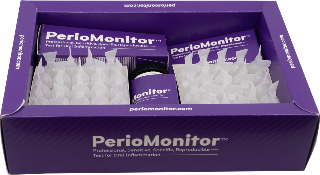 The PerioMonitor™ test kit provides a rapid and convenient method for indicating the presence of leukocyte esterase in the mouth.